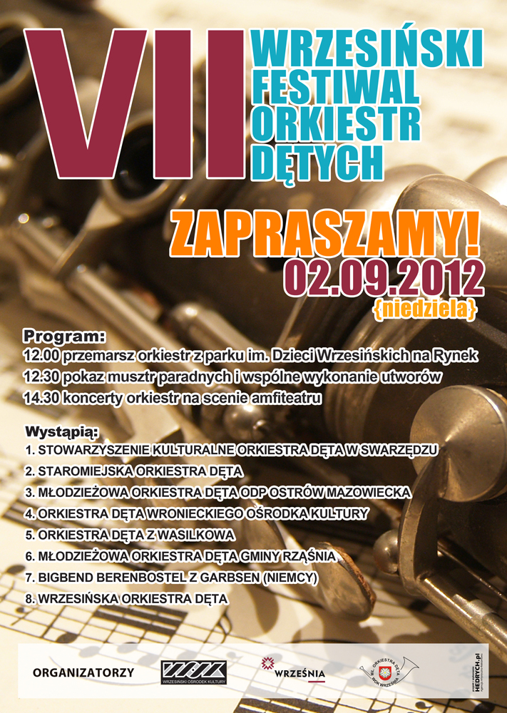 Serdecznie zapraszamy na VII Wrzesiński Festiwal Orkiestr Dętych, który odbędzie się 2.09.2012 r. (niedziela)
