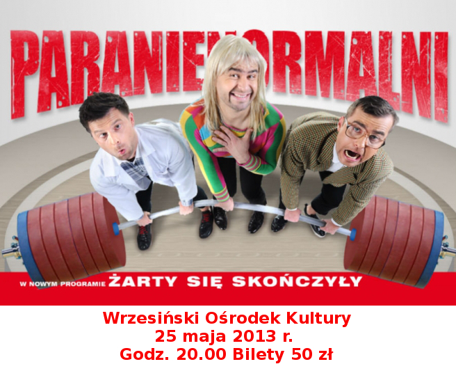 Wrzesiński Ośrodek Kultury zaprasza na kabaret: PARANIENORMALNI. 25 maja 2013 r. godz. 20.00 Zapraszamy. Bilety 50zł